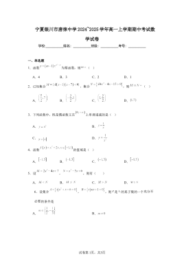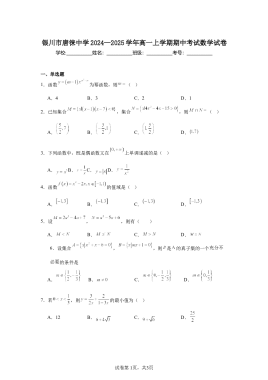 银川市唐徕中学2024—2025学年高一上学期期中考试数学试卷