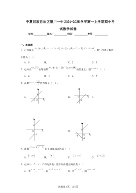 宁夏回族自治区银川一中2024-2025学年高一上学期期中考试数学试卷