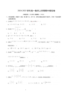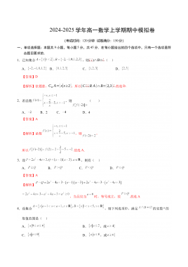 2024-2025学年高一数学上学期期中模拟卷(不含答案)