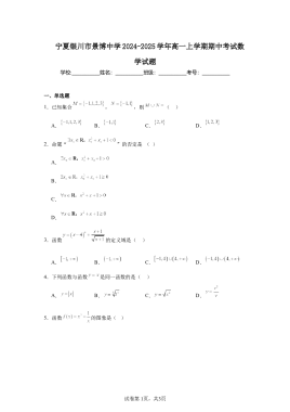 宁夏银川市景博中学2024-2025学年高一上学期期中考试数学试题