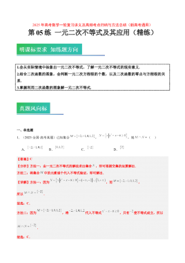第05练 一元二次不等式及其应用(精练:基础+重难点)-2025年高考数学一轮复习讲义及高频考点归纳与方法总结(新高考通用)解析版