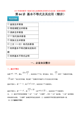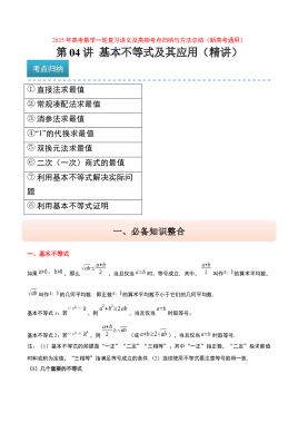 第04讲 基本不等式及其应用(精讲)-2025年高考数学一轮复习讲义及高频考点归纳与方法总结(新高考通用)原卷版