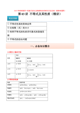 第03讲 不等式及其性质(精讲)-2025年高考数学一轮复习讲义及高频考点归纳与方法总结(新高考通用)原卷版