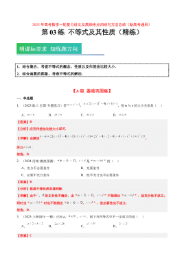 第03练 不等式及其性质(精练:基础+重难点)-2025年高考数学一轮复习讲义及高频考点归纳与方法总结(新高考通用)解析版
