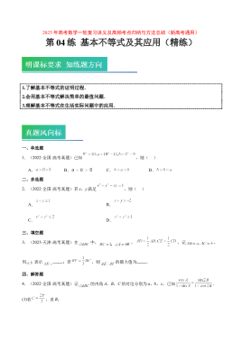 第04练 基本不等式及其应用(精练:基础+重难点)-2025年高考数学一轮复习讲义及高频考点归纳与方法总结(新高考通用)原卷版
