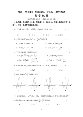 银川一中2022-2023学年第一学期高一年级期中考试数学试卷pdf