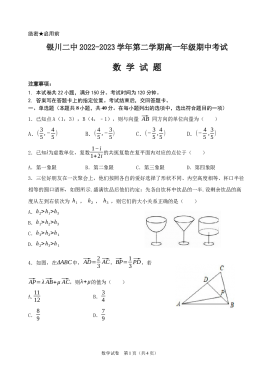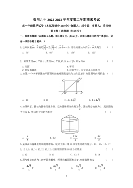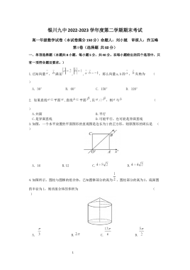 银川九中2022-2023学年度第二学期期末考试高一年级数学试卷Word版