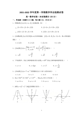 2021-2022学年度第一学期教学学业检测试卷高一数学试卷(学生版)
