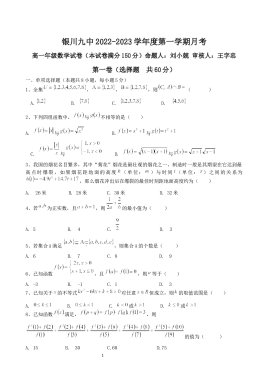 银川九中2022年高一年级第一次月考数学试卷