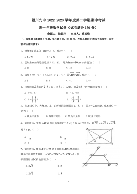 银川九中2022-2023学年度第二学期期中考试高一年级数学试卷