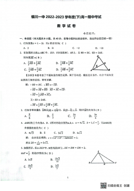 银川一中2022-2023学年度(下)高一期中考试数学试卷