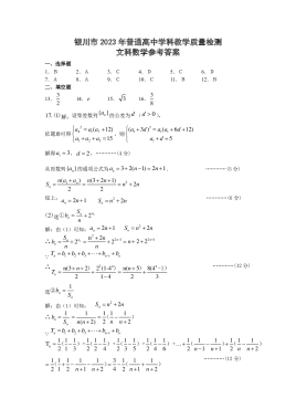 银川市2023年普通高中学科教学质量检测(文科数学)答案