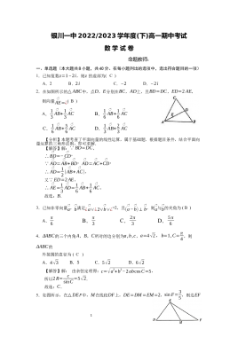 银川一中20222023学年度(下)高一期中考试(含解析)