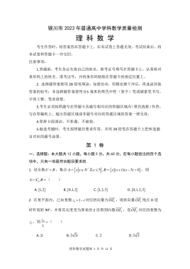 银川市2023年普通高中学科教学质量检测(理科数学)含答案