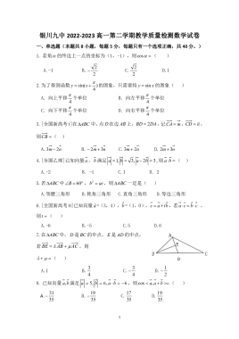 银川九中 2022-2023 高一第二学期教学质量检测数学试卷