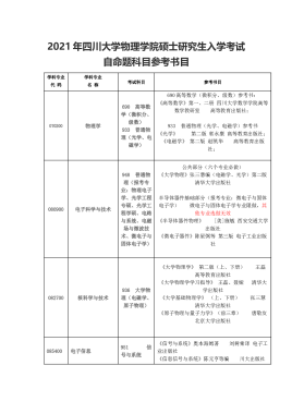 2021年四川大学物理学院硕士研究生入学考试自命题科目参考书目