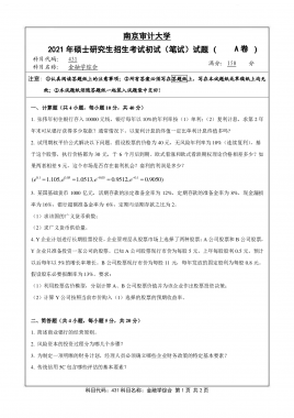 2021 年硕士研究生招生考试初试(笔试)试题( A 卷 )南京审计大学