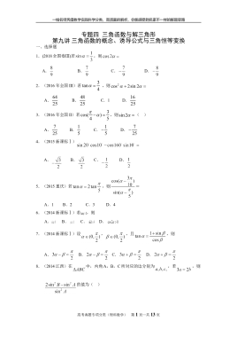 专题四 三角函数与解三角形 第九讲 三角函数的概念、诱导公式与三角恒等变换(含答案)