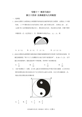 专题十一 概率与统计第三十四讲 古典概型与几何概型(含答案)